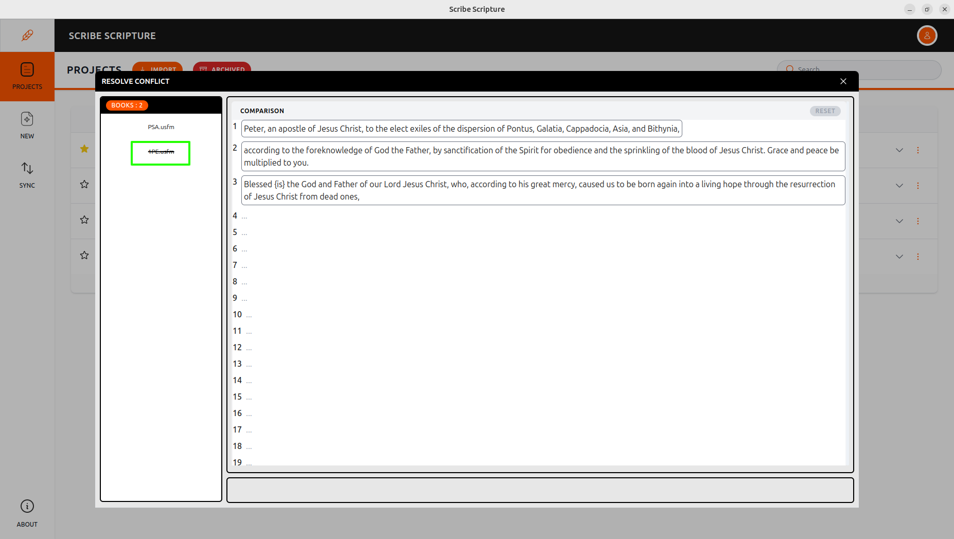 The Offline Merge feature enables multiple translators to work independently on the same Bible translation project and later merge their changes into a unified version.